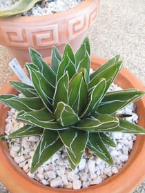 Un chef d'oeuvre de géométrie à l'âge adulte.La plante forme une rosette rigide et sphérique,vert mât , ornées de raies blanches , pourvue d’aiguillon sombres.. Dès les premiers froids, il