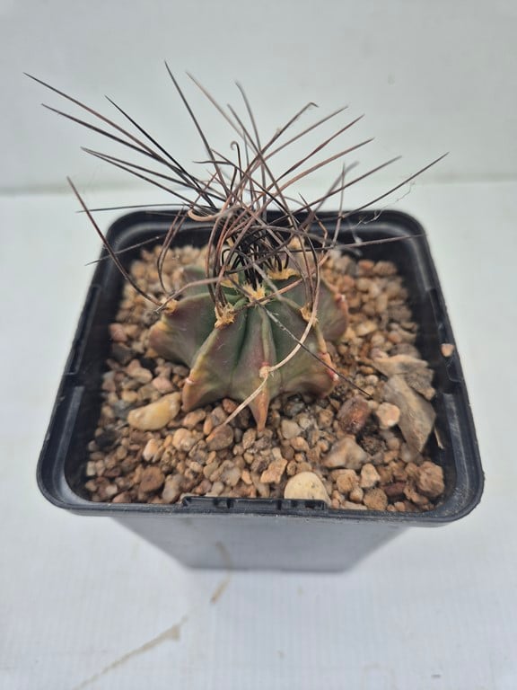 Plante globulaire à l' épiderme vert-bleu, absence de flocons blancs. Epines souples de couleur jaune doré et devenant grisâtre avec l'age, elles peuvent mesurer 5 à