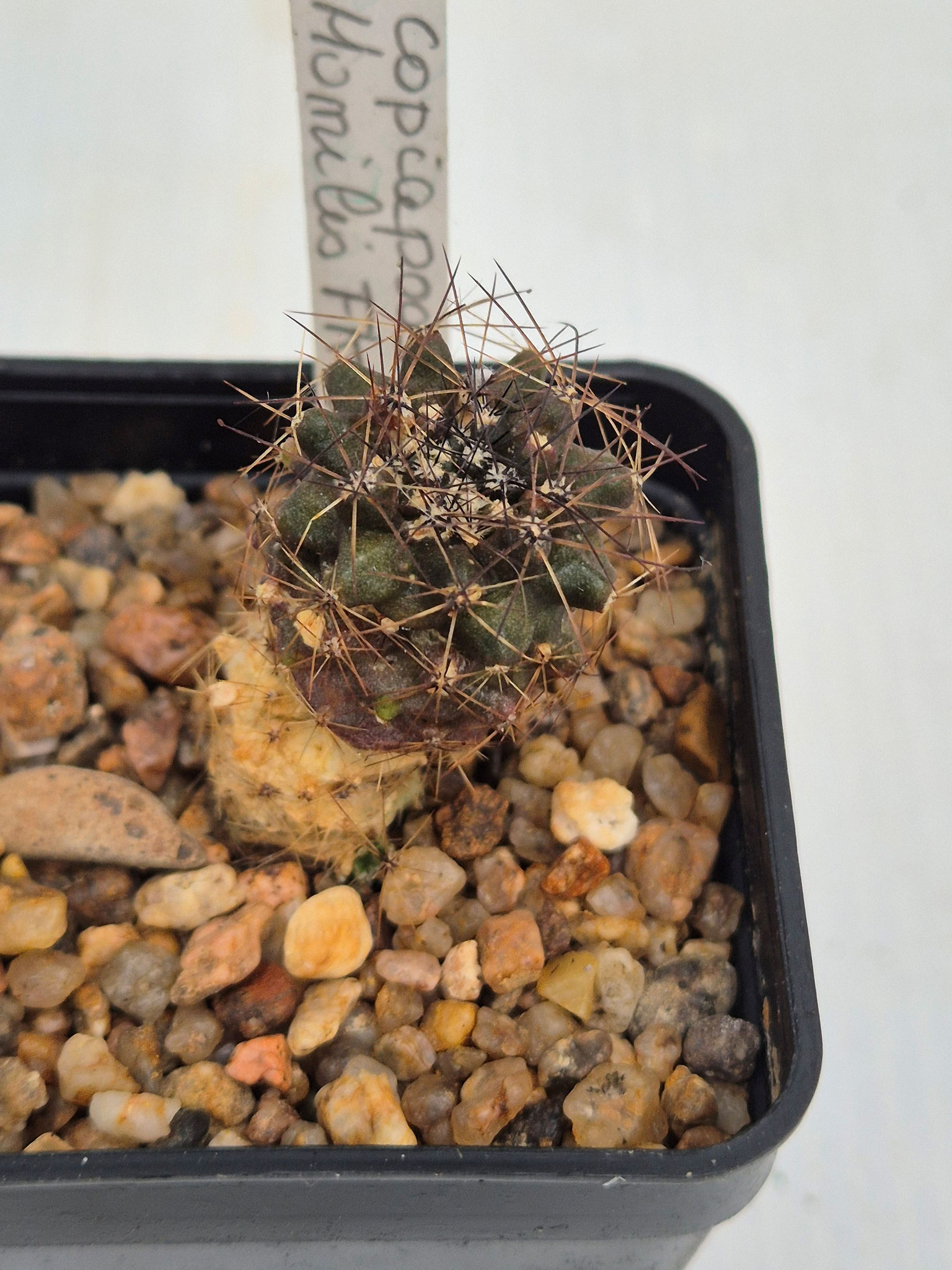 Petit cactus solitaire ou cespiteux poussant a ras le sol, épiderme vert olive à grisâtre. Racine napiforme, fleurs jaunes.